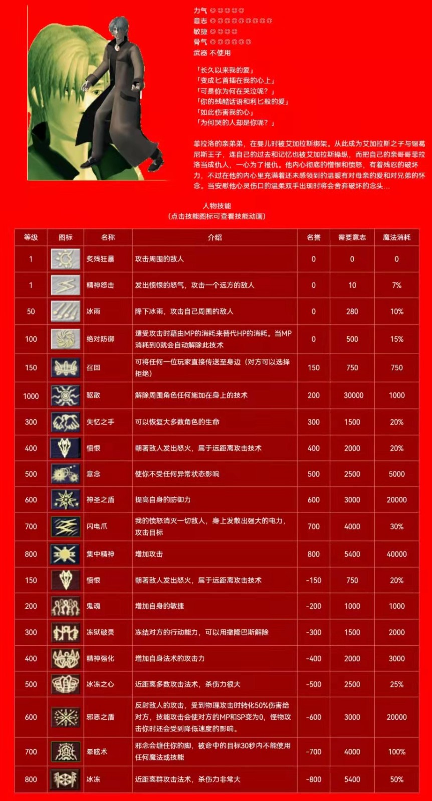 阿 群攻技能 白名:精神怒击(1级),冰雨(50级) 蓝名:闪电爪(700级) 红名: 冰冻之心(500级),冰冻(800级)