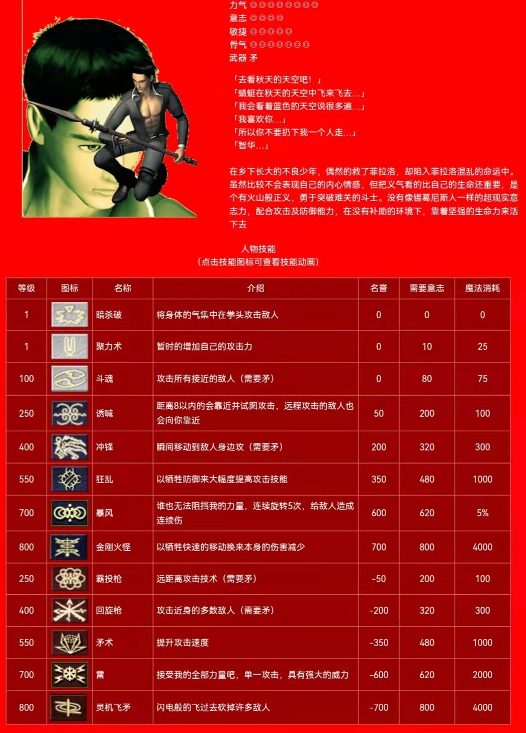 矛 群攻技能: 白名:斗魂(1级) 蓝名:暴风(700级) 红名:回旋枪(400级)
