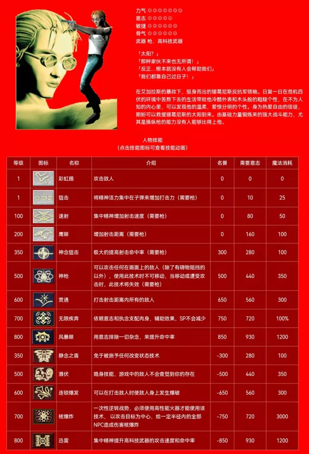邓 群攻技能 白名:斗气(1级) 蓝名:银色之箭(600级) 红名:分身(400级)自爆(800级)
