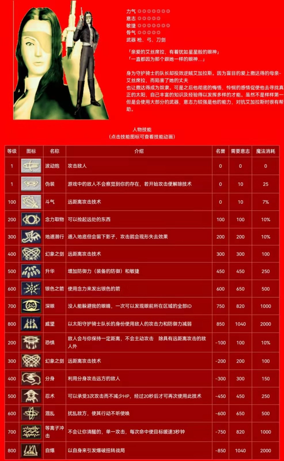 邓 群攻技能 白名:斗气(1级) 蓝名:银色之箭(600级) 红名:分身(400级)自爆(800级)
