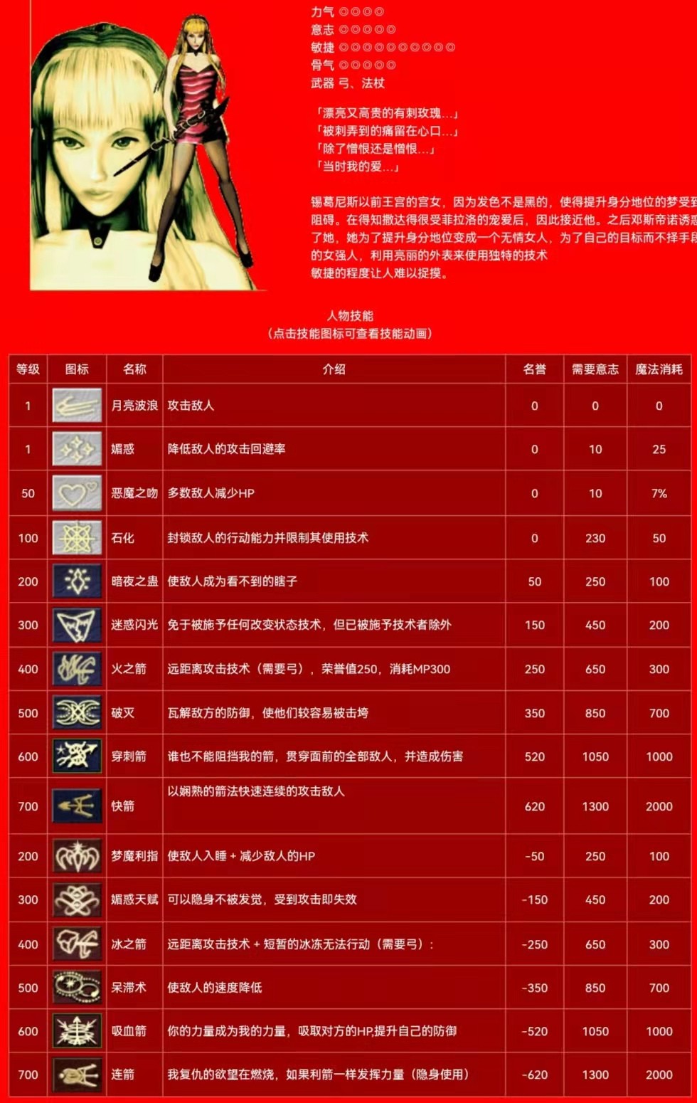 罗 群攻技能 白名:恶魔之吻(1级) 红名:冰箭(400级) 蓝名:快箭(700级) 删除了红名300级隐身技能